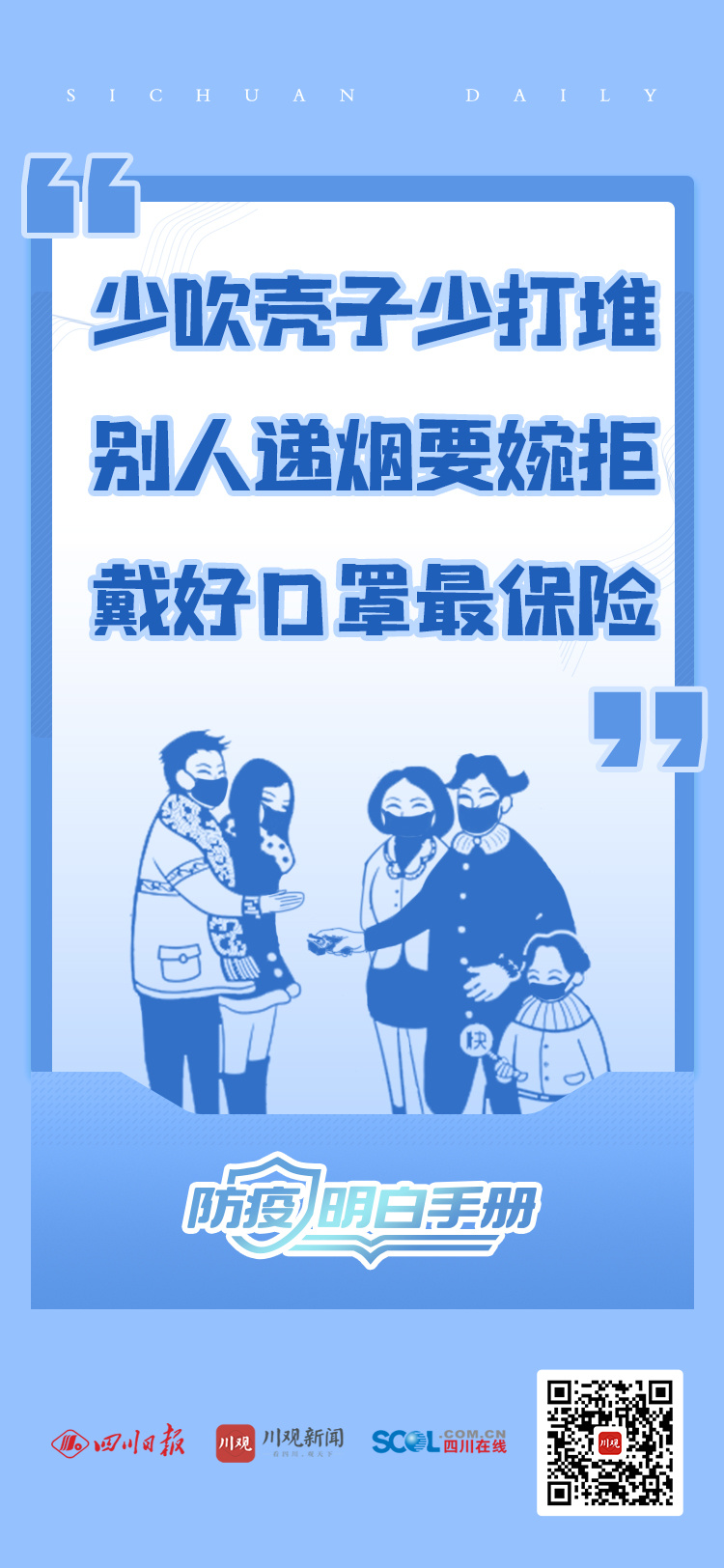 元旦假期已至,春节临近,返乡人员急剧增多,多重因素叠加,疫情防控形势十分严峻。农村如何平稳度过“双节”防疫大考?川观新闻“防疫明白手册”特别推出一组方言海报,为你厘清农村防疫注意事项。请转发收藏!