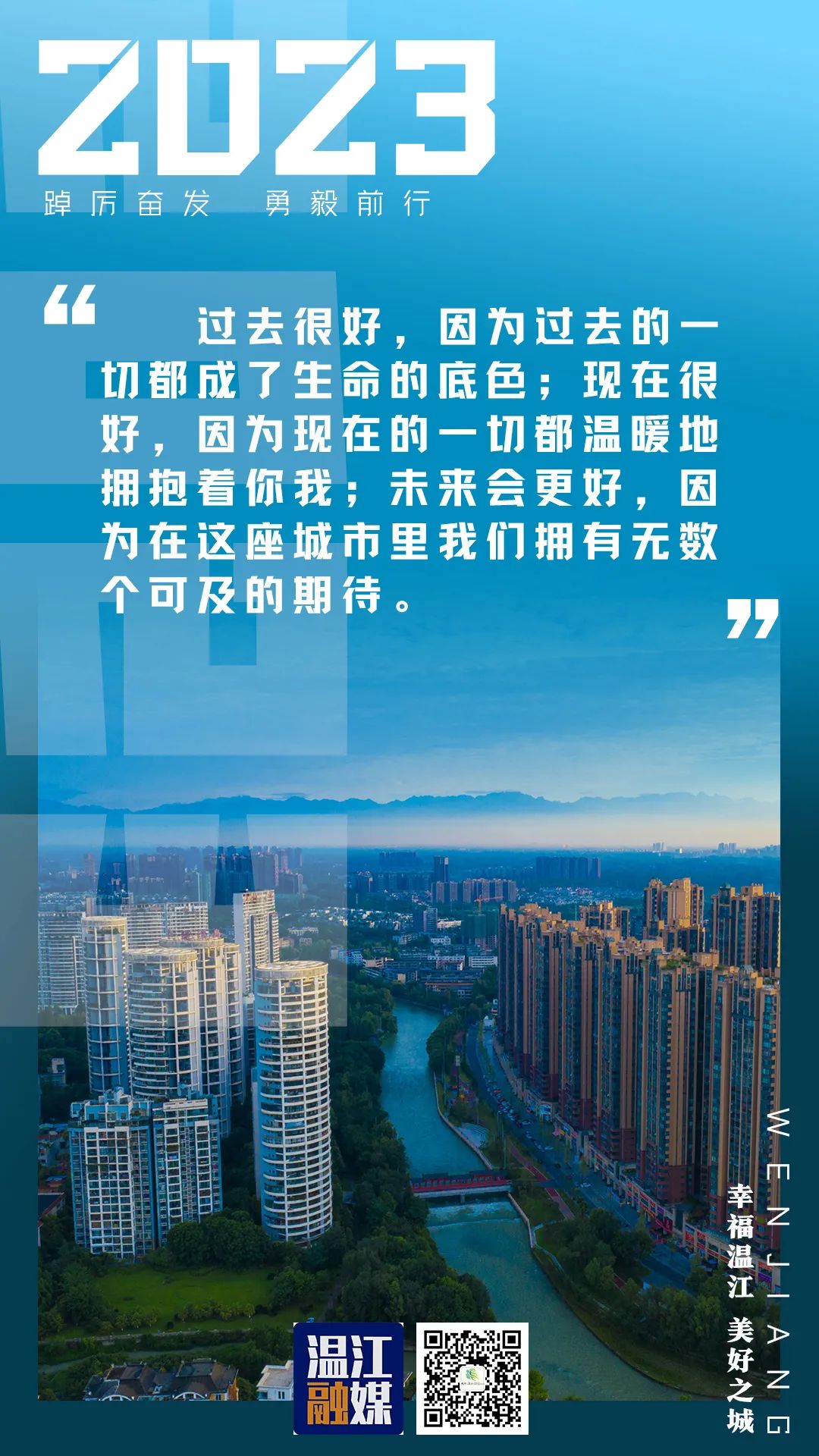 恒定的城市态度让温江的归属可期,温暖的城市力量让你我的内心安稳。当我们在新年的钟声里,走进江安河和金马河的波光霞影,走进千年文庙的时光剪影,城市的初心历久弥坚,城市的愿景如画勾勒,新与旧的交响曲,彰显着城市的特质,激发着城市的活力,推动着城市的进步。与城市共进,和时代同频,“两河一心”的营城策略,为我们接通了无限的远方,鼓舞着我们踔厉奋发、勇毅前行。