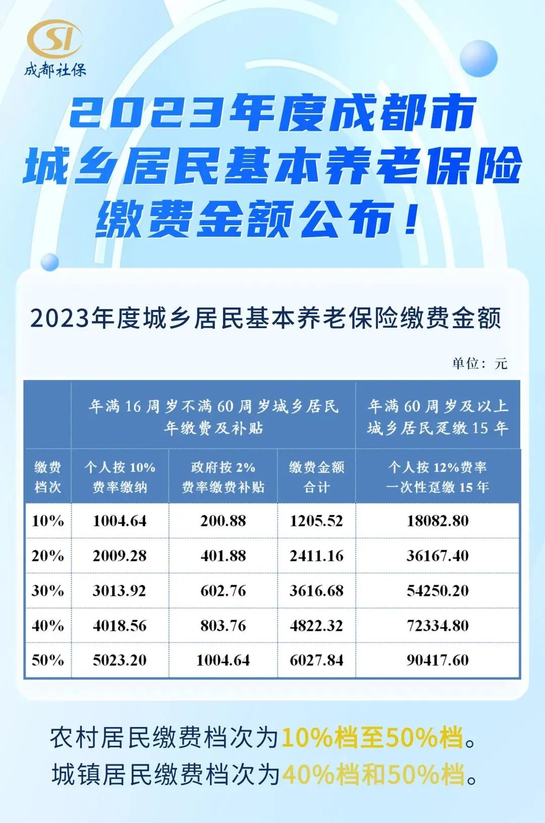 2023年度成都市城乡居民基本养老保险缴费金额公布→