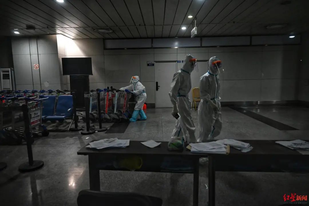 1月7日这天,他们站好最后一班岗,为来自赫尔辛基、开罗、迪拜等的9个入境航班服务。当最后一班来自东京的3U3962航班的旅客们走进防疫工作区,有人为地勤人员送上鲜花——这群地勤人员已坚守岗位三年,闭环管理下每隔一个月才能回一次家。