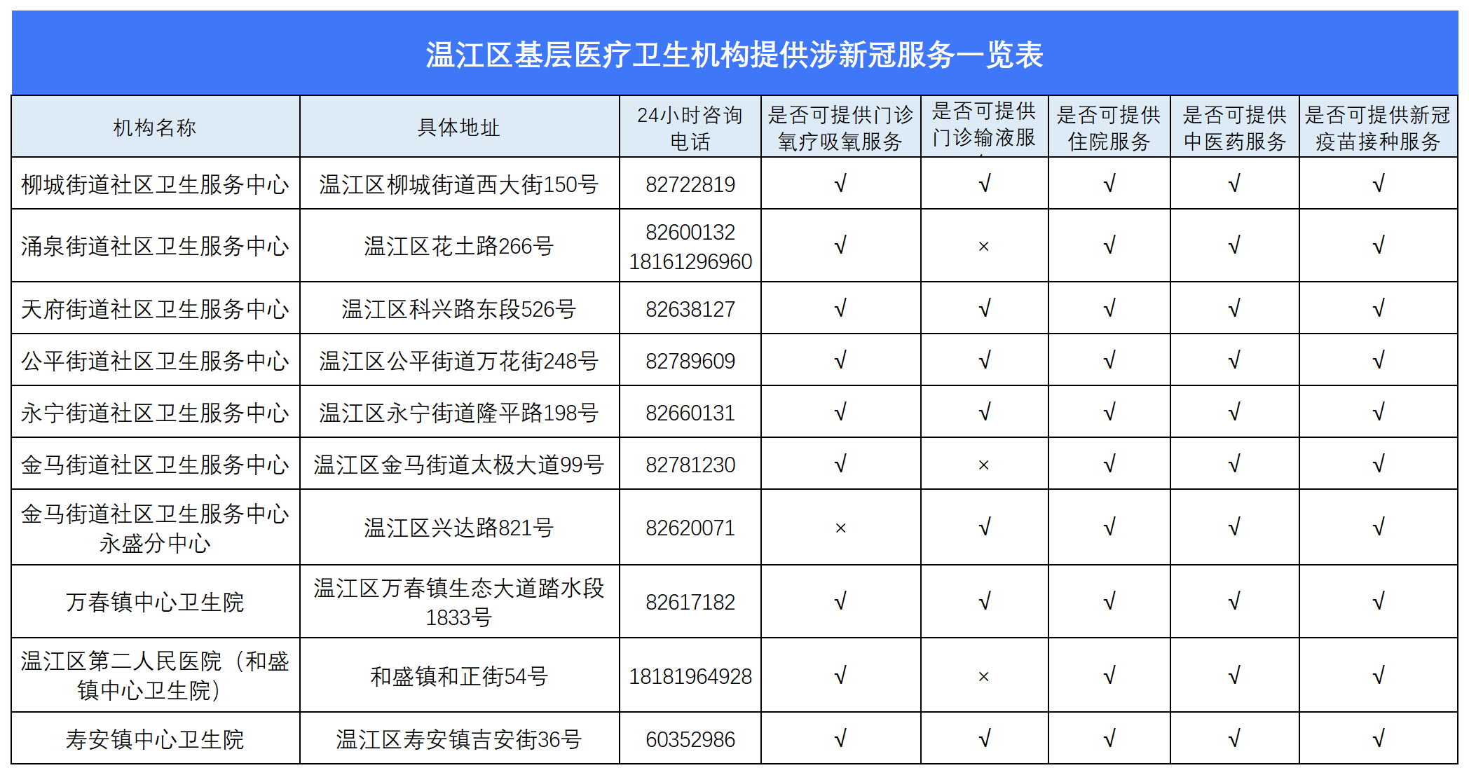 温江:请收藏!温江区基层医疗卫生机构提供涉新冠服务一览表