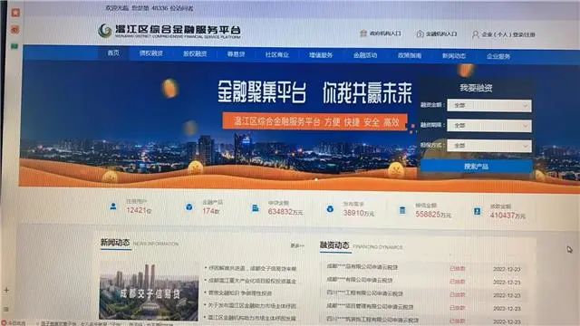 为中小企业提供“一站式”金融服务,让企业足不出户便可实现融资,截至目前,温江区综合金融服务平台注册企业及个人12416户,企业通过平台申请贷款63亿元,成功撮合融资41亿元,为区内上千家企业提供信贷支持,推动高效高质量发展。温江区综合金融服务平台是由区财政局牵头,成都光华开源资本管理有限责任公司承建的集政策产品、中介、信息于一体的科技金融服务平台。该平台于2020年2月上线,为银行等金融机构与企业提供了一个开放、合作、共赢的阵地,让所有银行在同一平台为企业提供差异化信贷服务,为中小企业的发展提供了融资渠道,降低了企业融资的时间成本,提升区域内民营中小企业的金融服务获得感。详戳:http://www.wjjrfw.com/(温江融媒)