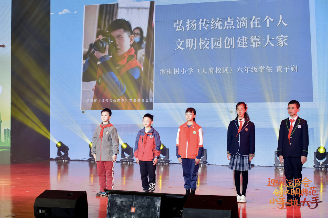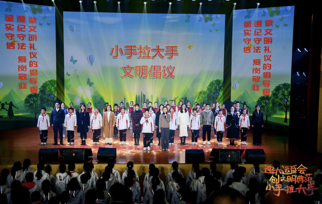 “‘文明典范 共建共享’——文明和谐的画卷,在座的每一位师生都是执笔作画者、都是文明践行者。文明是城市的美好愿景,取决于每一位市民的精神风貌与价值追求。我们今天发动‘迎大运盛会 创文明典范—小手拉大手’系列主题活动,将发动师生广泛参与文明校园创建行动,‘小手拉大手’、影响身边人、引导激励每一位市民争当文明典范城市创建的支持者、参与者、守护者、实践者。”市教育局相关负责人表示。