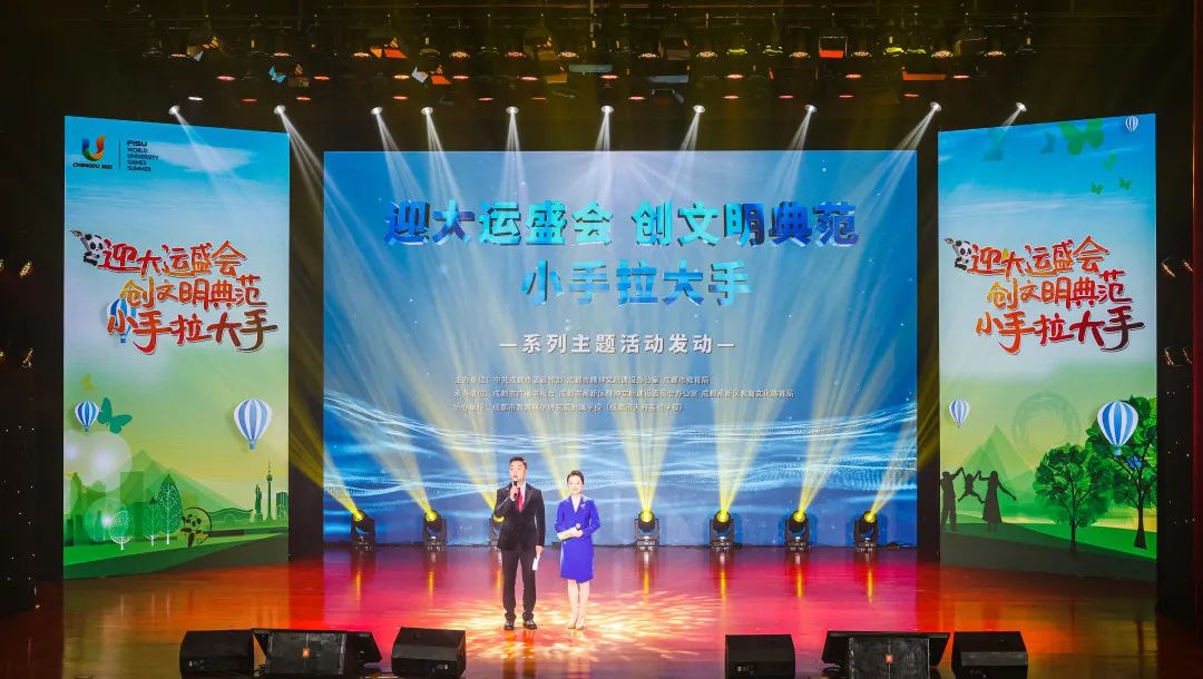 3月1日,由市委宣传部、市文明办、市教育局主办,市广播电视台、高新区精神文明建设委员会办公室、高新区教育文化体育局承办的“迎大运盛会 创文明典范——小手拉大手”系列主题活动发动仪式举行,此次活动通过路演、微课堂、节目展演等形式向同学们展示文明的意义,以及如何为创建全国文明典范城市出一份力,同时发出“小手拉大手”文明倡议,引领全社会共同参与创城行动。