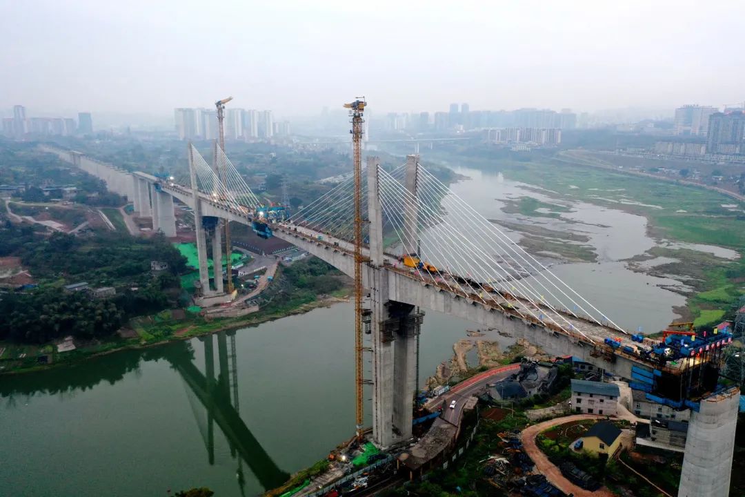 3月18日上午,重庆至昆明高速铁路重庆至宜宾段(以下简称“渝昆高铁川渝段”)控制性工程——泸州沱江特大桥主跨实现合龙。待渝昆高铁建成通车后,从成都出发,经成自宜高铁接渝昆高铁,将形成全程时速350公里的出川大通道,从成都到昆明3小时内可达。