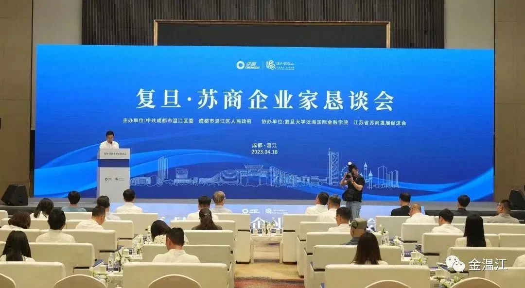 以至诚的态度拥抱机遇,以可许的信任共赴美好。4月18日,由温江区委、区政府主办,复旦大学泛海国际金融学院、江苏省苏商发展促进会协办的复旦·苏商企业家恳谈会在温江举行。企业家恳谈会上,温江区从城市特质、产业环境和营商环境三个方面作产业推介,复旦大学专家学者、苏商会企业家代表相继发言,共话机遇、共谋发展。恳谈会前后,莅温嘉宾和企业家代表前往科伦药业温江产业化基地考察产业建圈强链,前往鲁家滩湿地公园、仙境花园留灯书屋、潮·玩运动公园等地考察金马河运动休闲消费带和江安河活力新潮消费带,实地了解温江产业发展和“两河一心”场景营建等情况。(温江融媒)