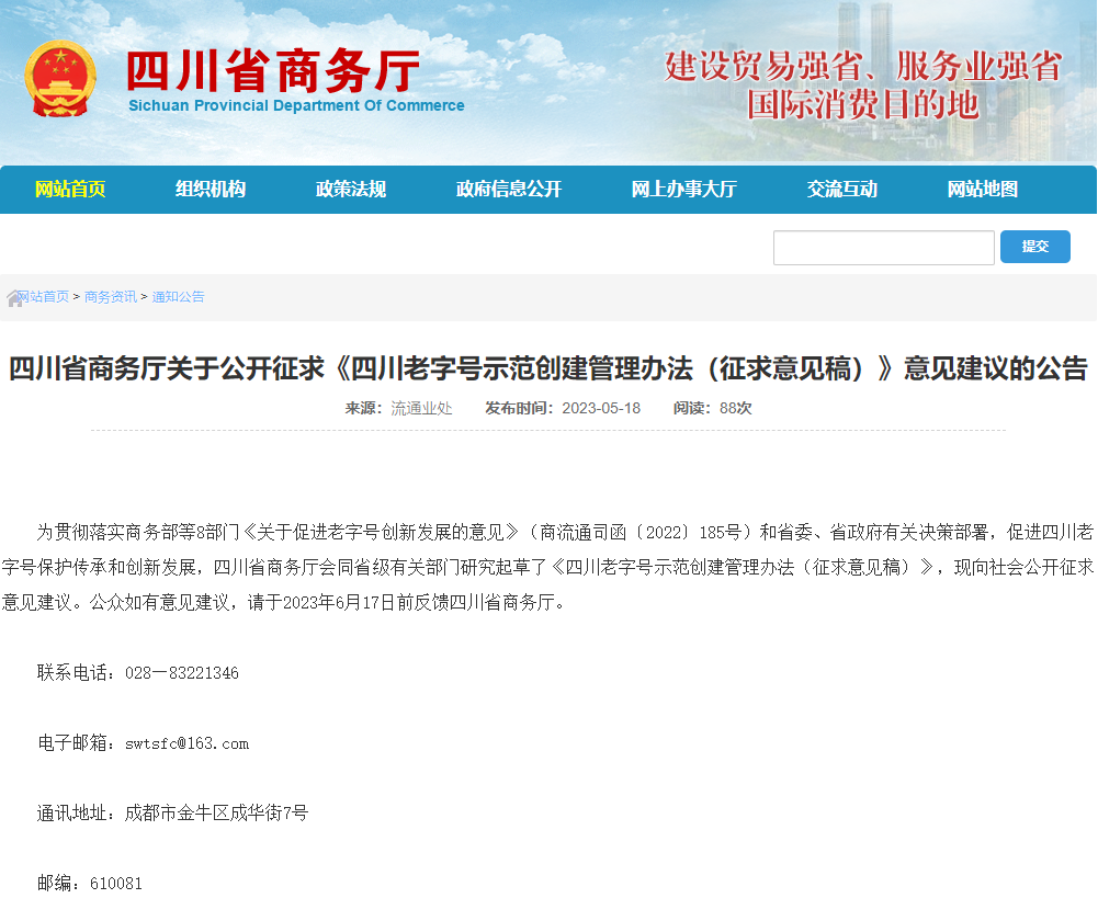 《四川老字号示范创建管理办法(征求意见稿)》