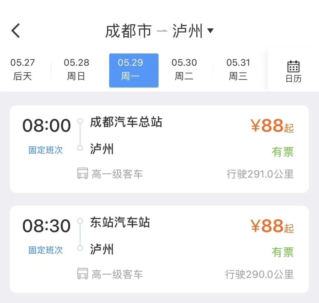 选择出发地、到达地、出发日期并点击查询即可选择合适的班次。