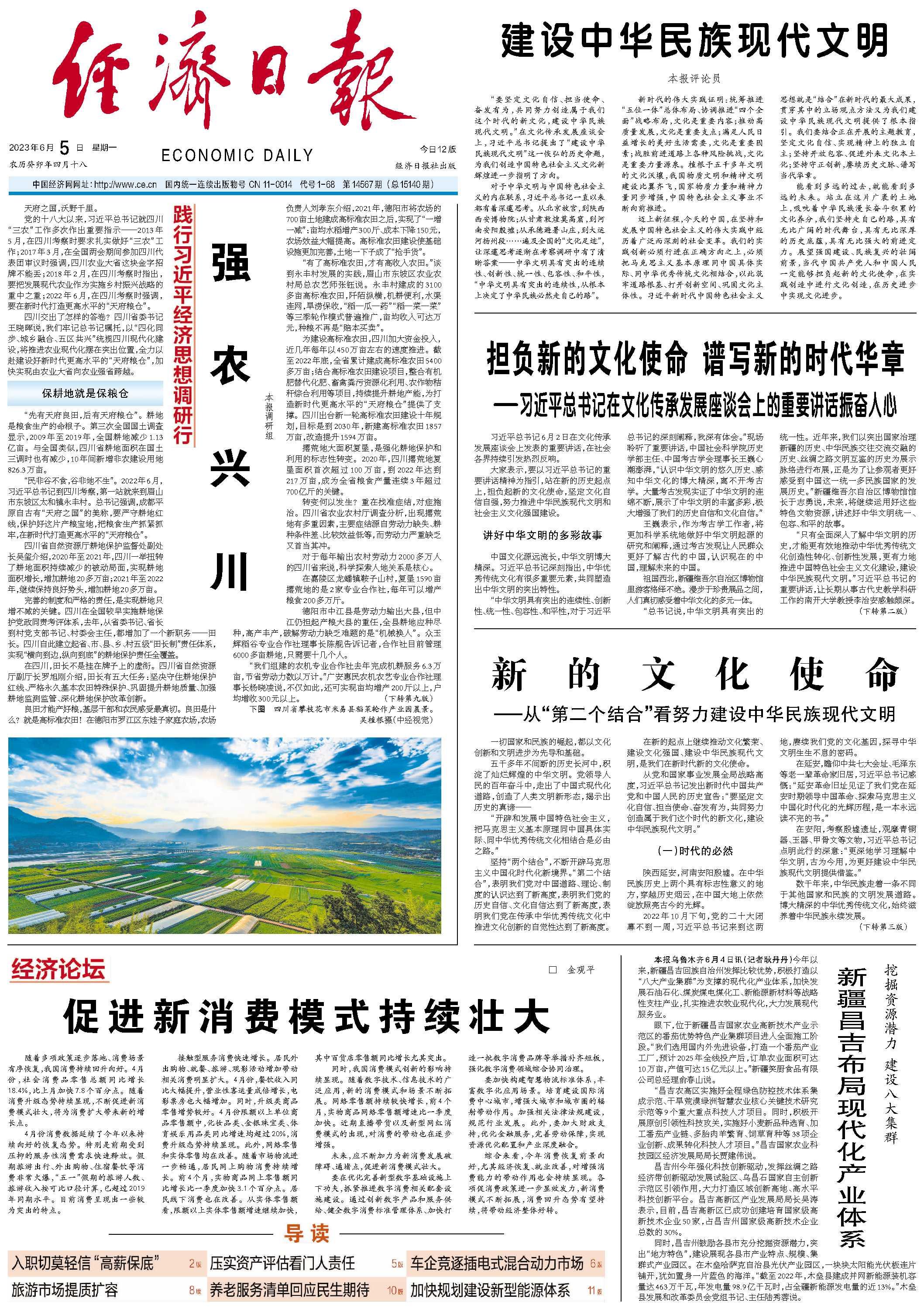 行走在蜀乡沃野,我们强烈感受到农业大省的魅力与活力。我国正从农业大国迈向农业强国,四川发展现代农业的实践让我们满怀信心,四川农业大省这块金字招牌一定能越擦越亮。