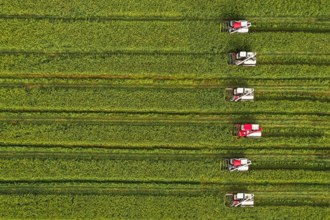 德阳广汉市国家现代农业产业园内正在机收水稻。李荣伟摄