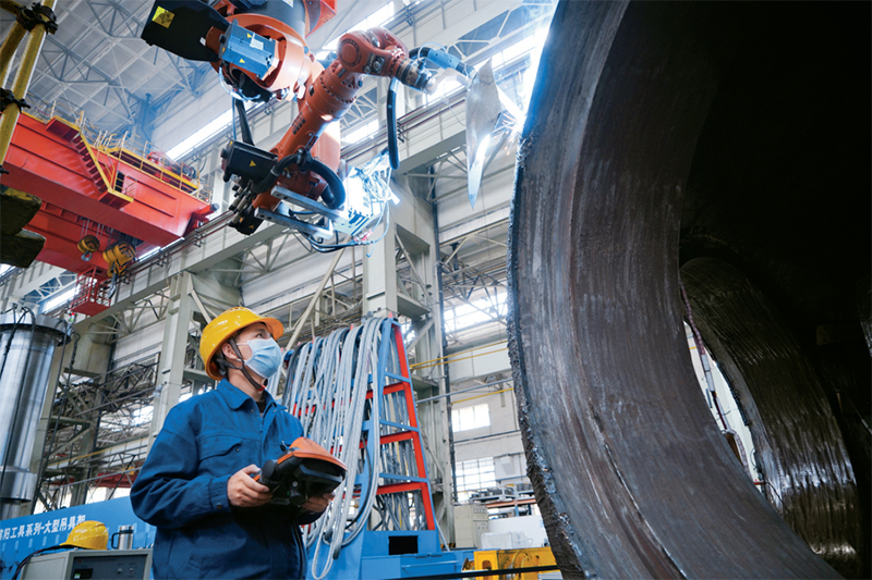 信息化是“关键引力”。四川抢抓国家“东数西算”工程机遇,重点推动数字赋能优势产业提质倍增,不断释放新动能。东方电气集团东方汽轮机有限公司叶片加工数字化车间,在机械臂的旋转挥舞下,一张叶片的加工精度可达0.03毫米,相当于一张A4纸厚度的1/3。重型燃气轮机被誉为装备制造业“皇冠上的明珠”,叶片是其中的核心部件之一。今年3月,由东方电气集团自主研制的我国首台全国产化F级50兆瓦重型燃气轮机(G50)商业示范机组,在广东清远正式投入商业运行,填补了我国自主燃气轮机应用领域的空白。东方汽轮机清洁高效透平动力装备全国重点实验室副主任田晓晶介绍,在G50研制过程中,东方汽轮机获得授权发明专利136项,形成燃机设计/制造标准超1000项,完整掌握了重型燃气轮机自主设计、制造、试验全过程能力。一季度,东方汽轮机新增生效订单同比增长30%,工业总产值同比增长14%。