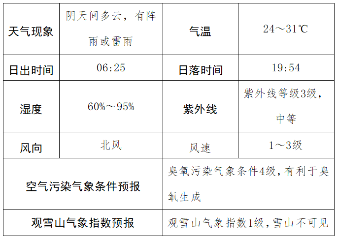 8月8日(周二):多云间阴,有阵雨或雷雨,气温23~33℃;
