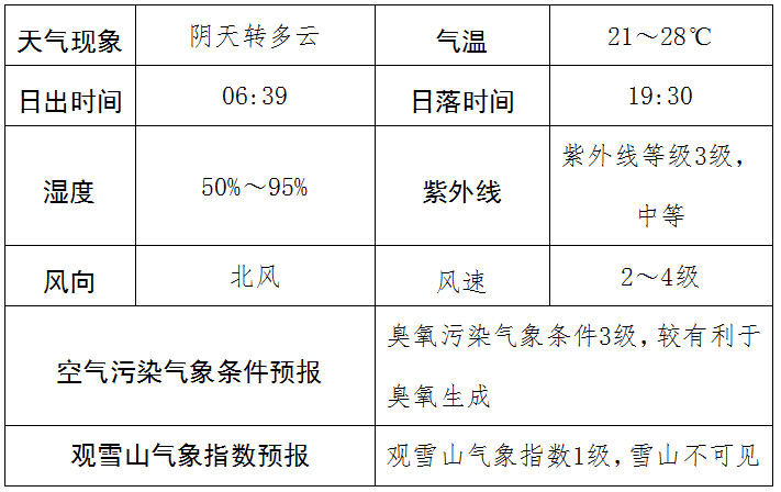 8月30日,预计我区白天阴天转多云,体感较为舒适。早间最低气温21℃左右,白天最高气温28℃左右。