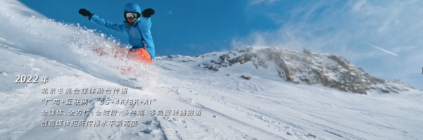 2022 年,北京冬奥会媒体融合传播,“广电+互联网”“5G+4K/8K+AI”,全媒体、全方位、全时段、多终端、多角度 转播报道,创造媒体矩阵传播水平新高度。