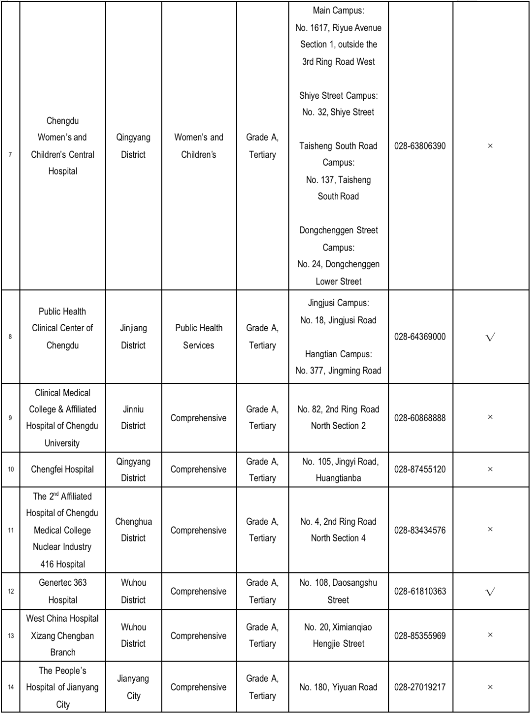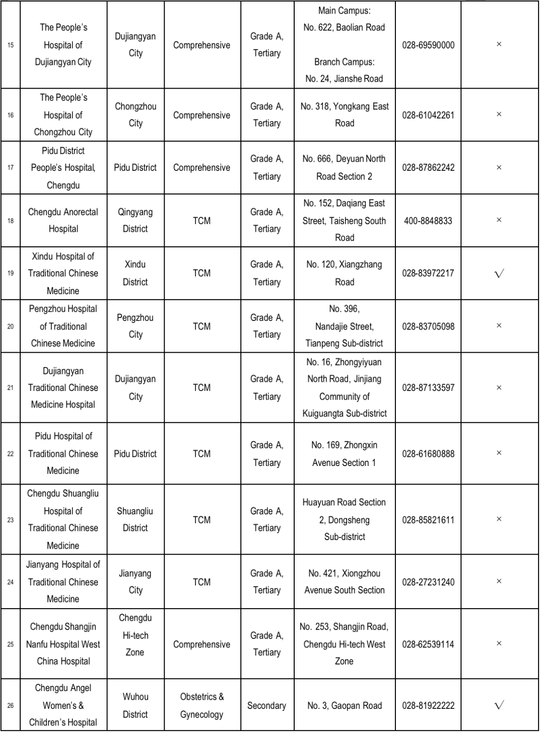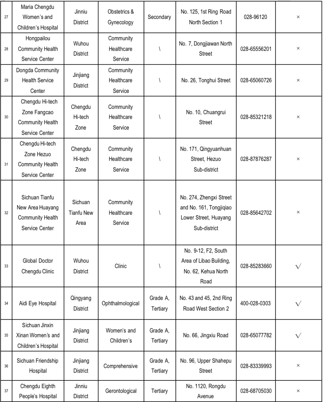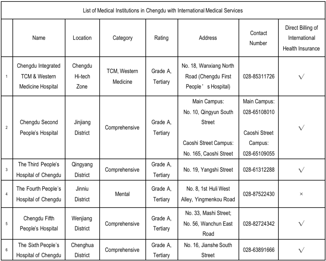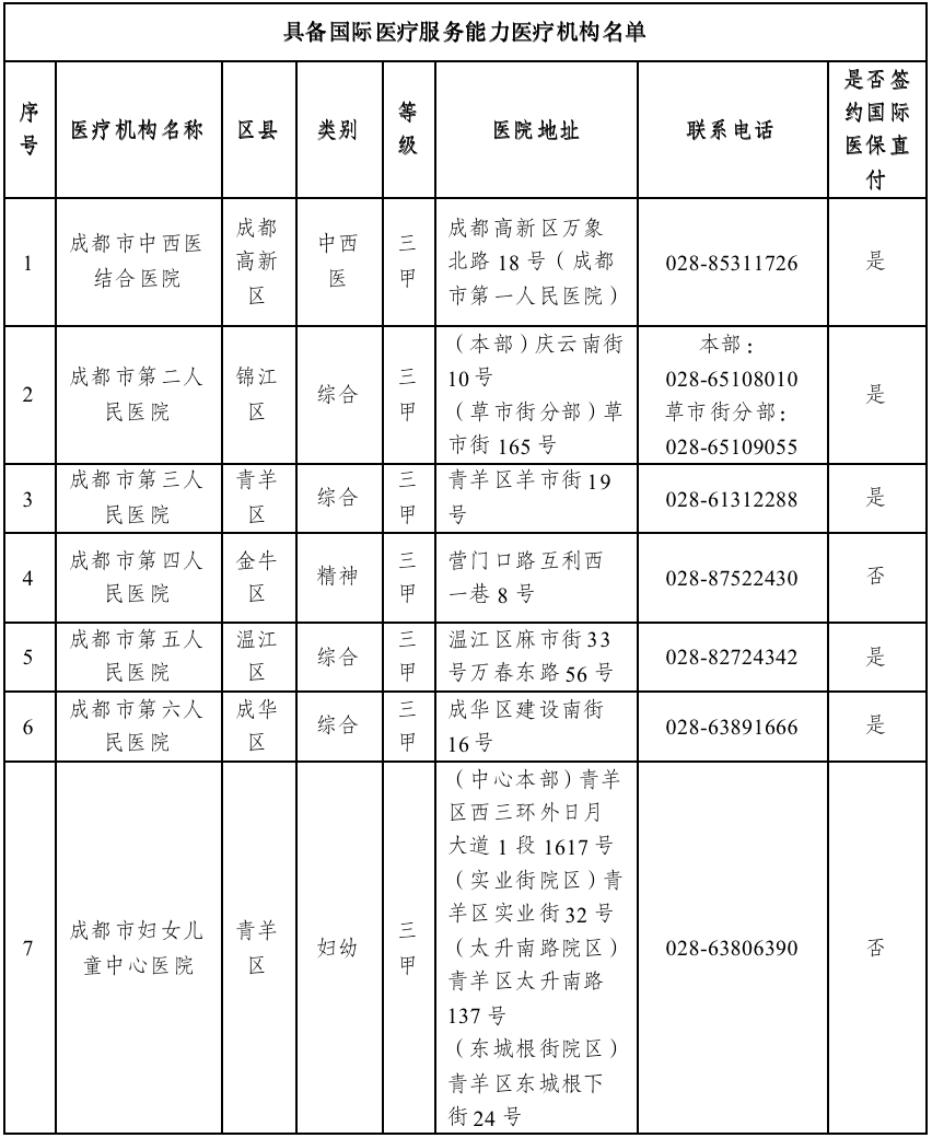 Check Chengdu Hospitals with International Medical Service成都具备国际医疗服务能力医疗机构名单