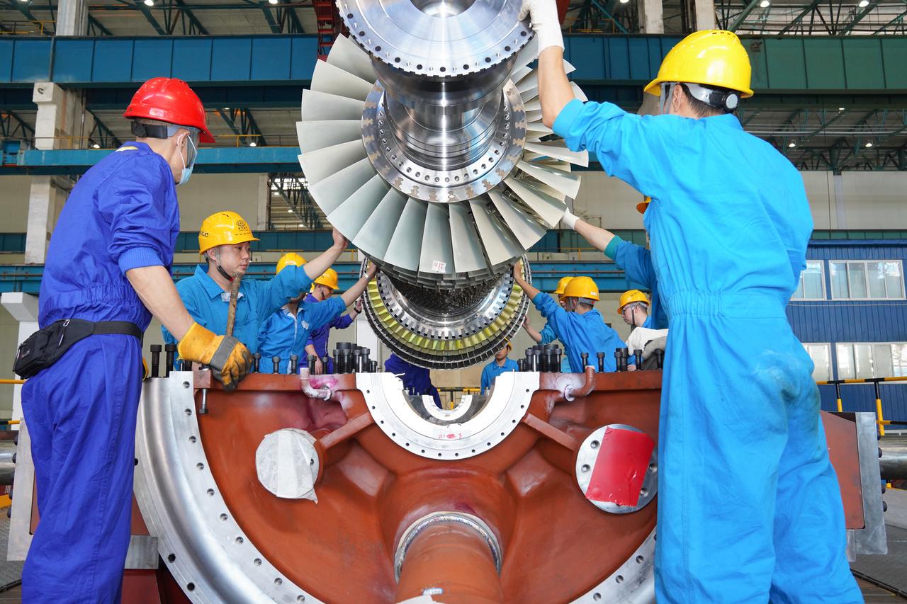 国内首台四川造“争气机”投入商业运行,工人正在组装零部件。东方汽轮机有限公司供图