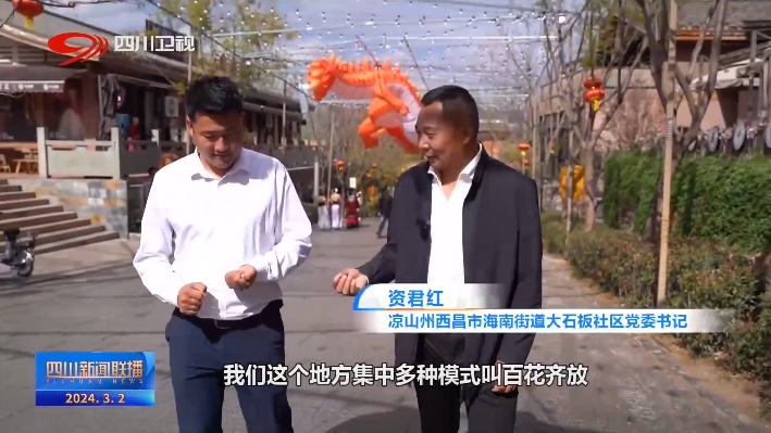 凉山州西昌市海南街道大石板社区党委书记 资君红:我们这个地方,集中多种模式,叫百花齐放,我们的古寺、我们的古井、古树,主要是大石板的古城,留住一部分人,然后二个就是到这个地方吃,邛海我们就靠邛海边的鱼,这个是多有特色。