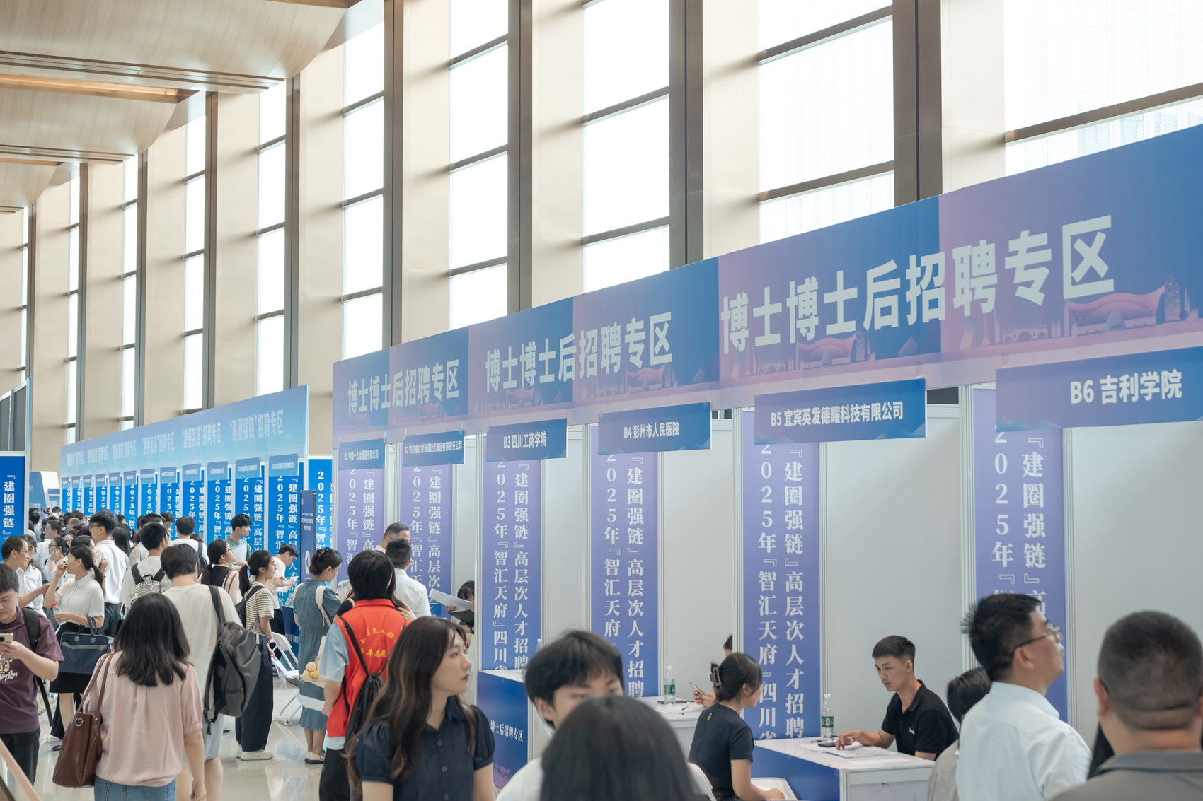 5月底举行的2025年“智汇天府”四川省重点产业“建圈强链”高层次人才招聘引进活动,3700余个岗位,专门针对硕博及以上人才、技师及以上高技能人才、高级专业技术人才等各类高层次人才、海外留学人才以及2025届高校毕业生等各类青年人才而设,近300人在现场达成初步就业意向。