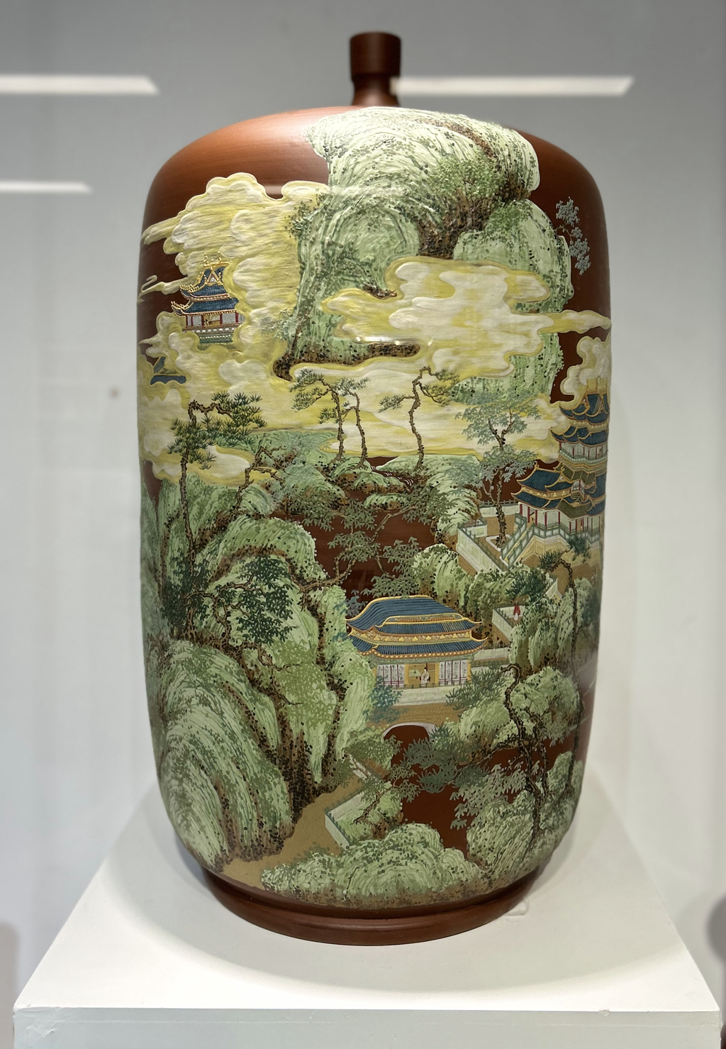 这份对传统技艺的坚守与创新,让丁己彩陶收获丰硕成果。在2023年第六届中国四大名陶(4+N)钦州展上,丁玉蝶的手绘花器《踏雪无痕》,凭借独特的荣州泥绘技法一举斩获金奖;2024年第七届中国四大名陶(4+N)建水展上,丁玉蝶的作品《龙马》凭借8块陶板的细腻彩绘,以工笔画的精湛技艺将骏马英姿展现得淋漓尽致,再夺金奖;今年6月,在第五届中国工艺美术博览会上,陶瓷镶器作品《牧马图/逸骏芳华图》更是摘得2025年“百鹤杯”工艺美术设计创新大赛百鹤奖,以非遗工艺与现代艺术的完美结合,赢得行业高度赞誉。