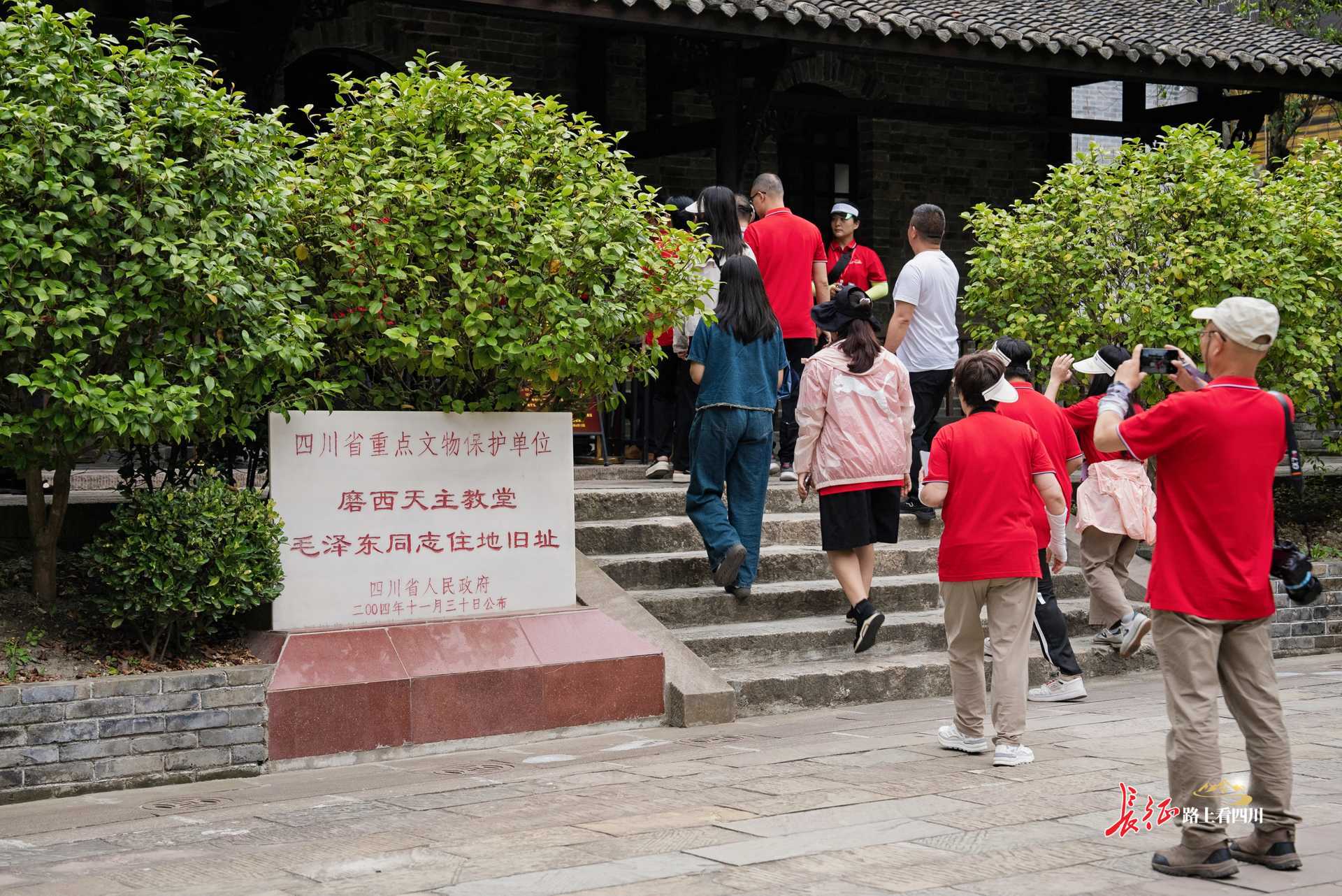 6月17日,队伍成员们在磨西古镇开展红色寻访,走进毛泽东同志住地旧址,触摸革命岁月的厚重历史;寻着磨西镇沿线村落,感受深厚的军民鱼水情谊。