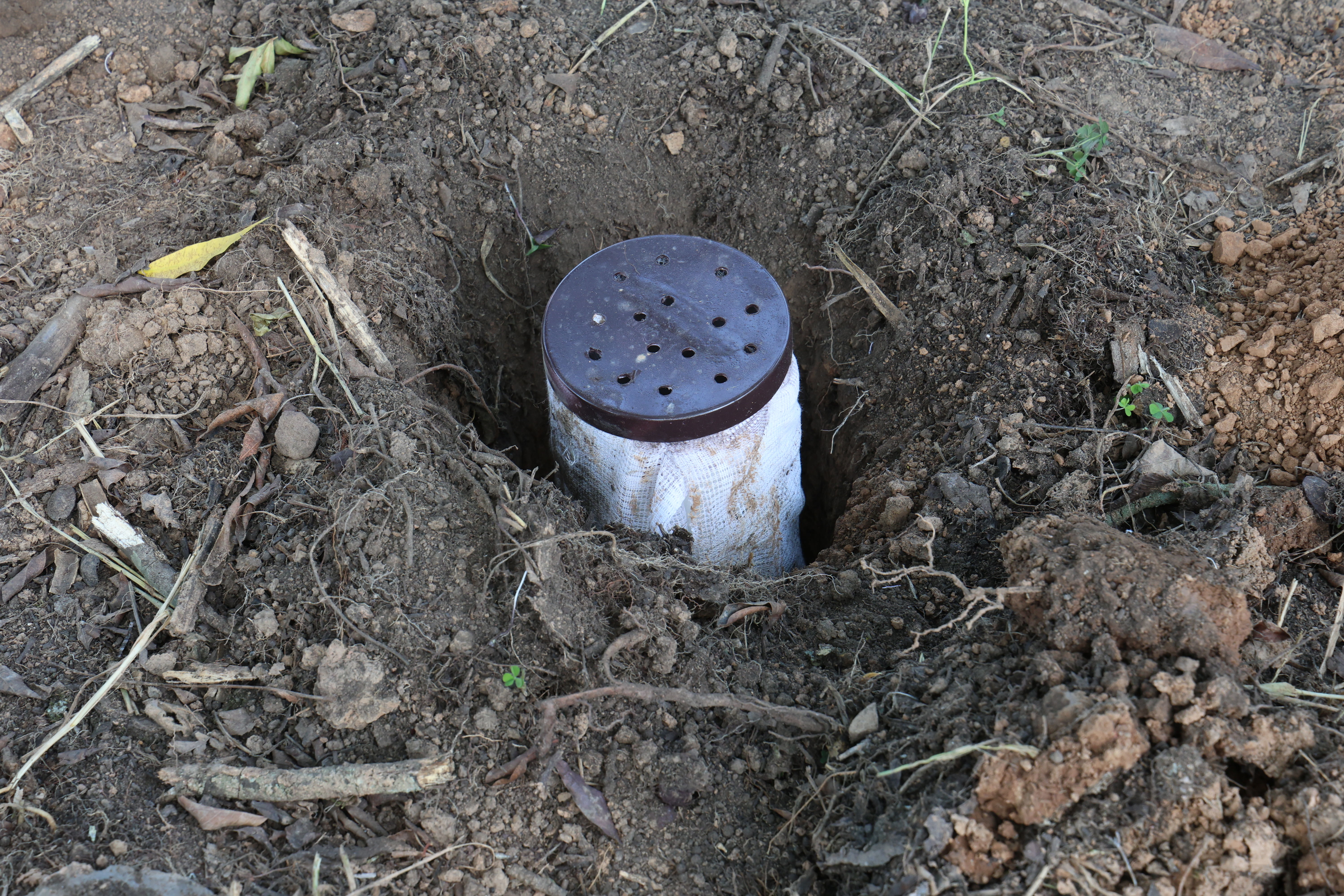 无人机在古树头顶嗡嗡盘旋,精准喷洒着驱虫药剂;树上,两名技术人员正在清理树干腐朽物并刷上了古树专用防腐剂,防止树体进一步腐烂;树下,十几名技术人员挥舞着锄头,在树周挖出8条呈“米”字型放射状的复壮沟,将生物有机肥与土壤充分拌合后填埋进去。李昆伦边忙活边解释:“现在埋的这12根透气施肥管,就相当于给古树装了‘呼吸机’。”随后,18根有机棒肥也被埋进土里,未来两年,它们将持续为古树“输血”。
