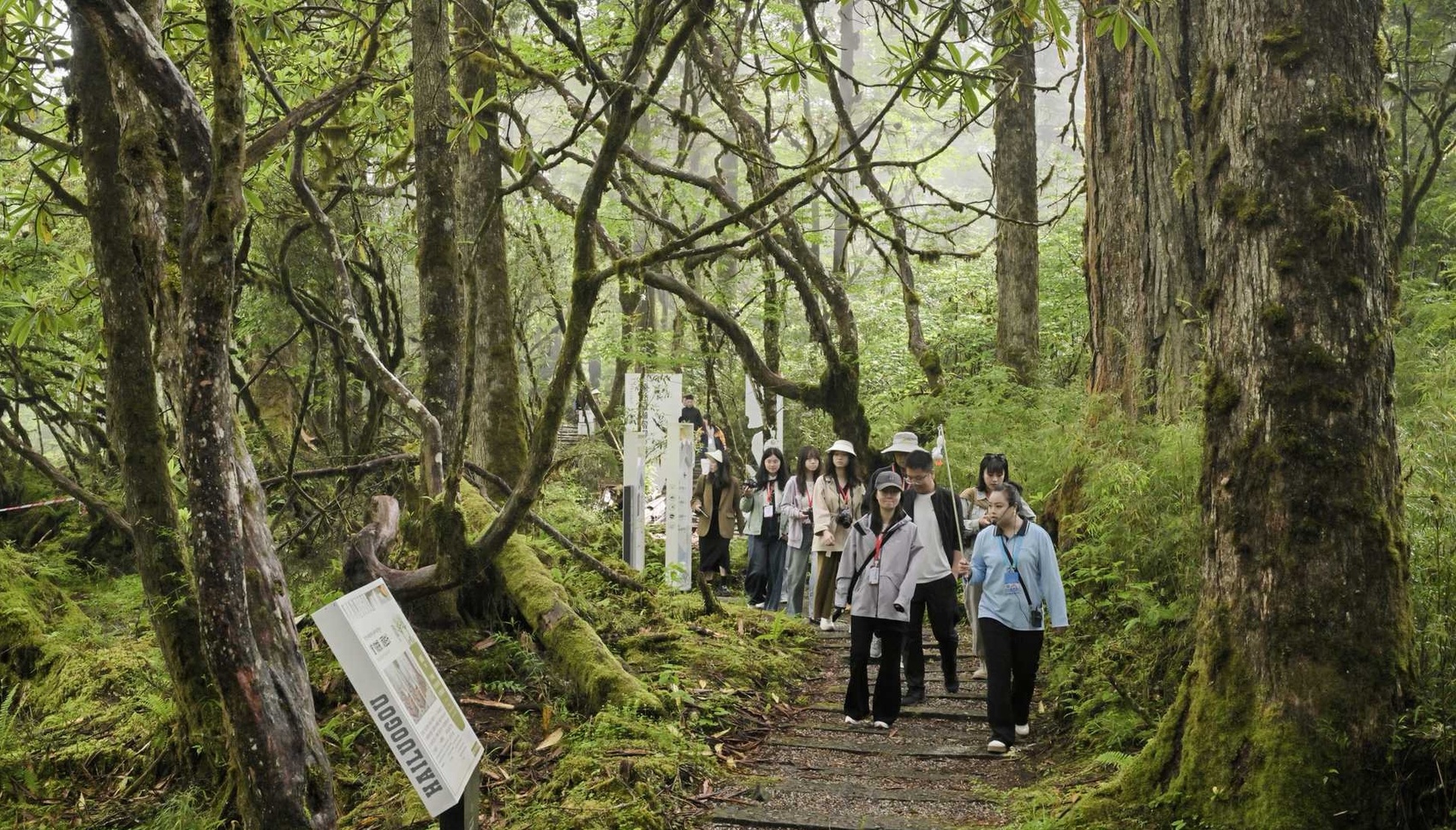 走进景区内的森林步道,除了原始森林风光外,道路两旁,关于珍稀动植物的科普展板吸引了不少游客驻足细读。