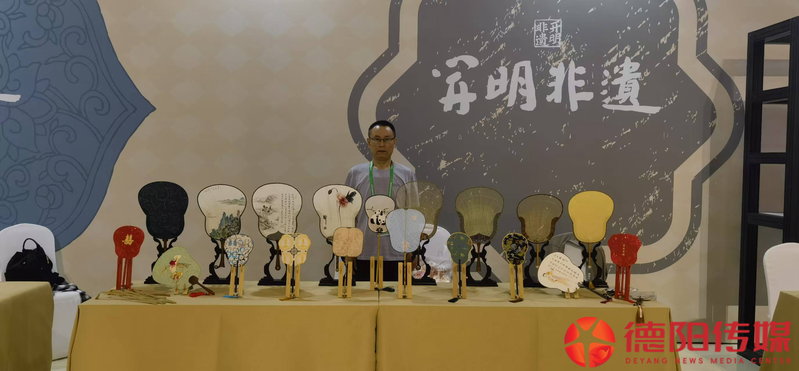 杨占勇带着他的德阳潮扇参加第九届中国成都国际非物质文化遗产节。