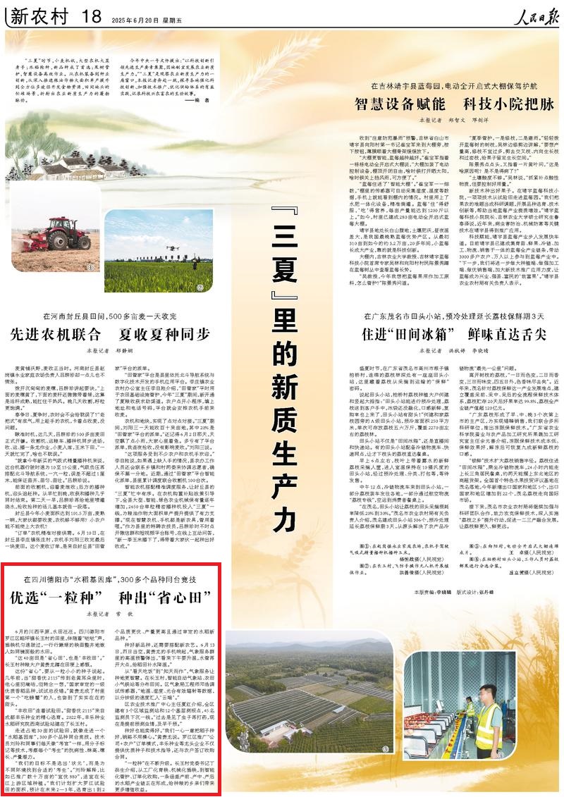 “丰收田”连着试验田。“甜香优2115”来自成都丰乐种业的精心选育。2022年,丰乐种业水稻研究院西南试验站建在了长玉村。