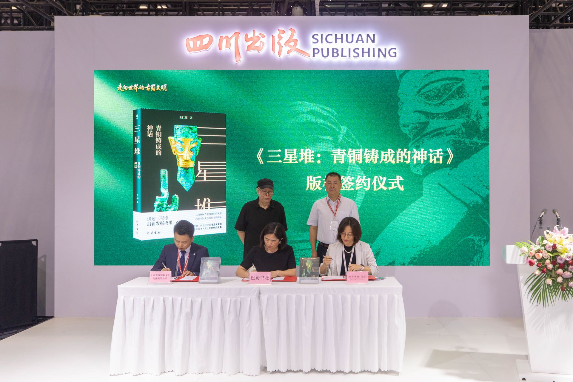 古蜀文明也在展会上走向世界,《遇见三星堆》俄文版新书发布,《三星堆:青铜铸成的神话》版权签约。