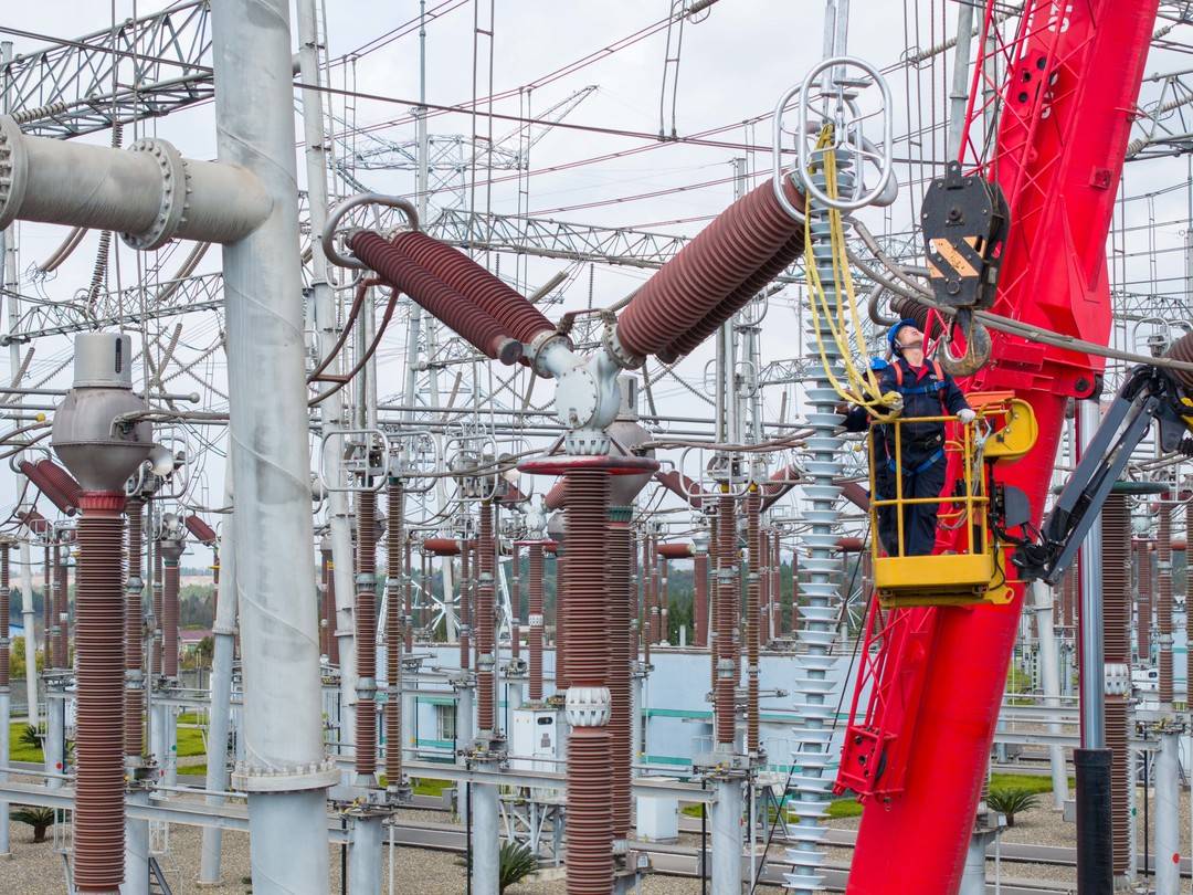 国网绵阳供电公司施工人员在富乐500千伏变电站主变扩建工程作业。(田海 摄)