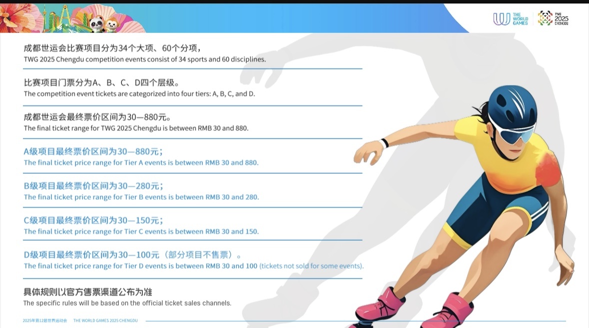 票价区间为30—880元!成都世运会比赛门票开售