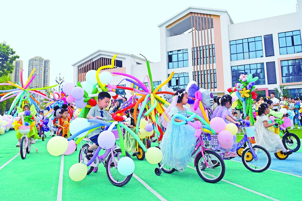 蓬安县桑梓幼儿园的孩子们参加游园活动(资料图)