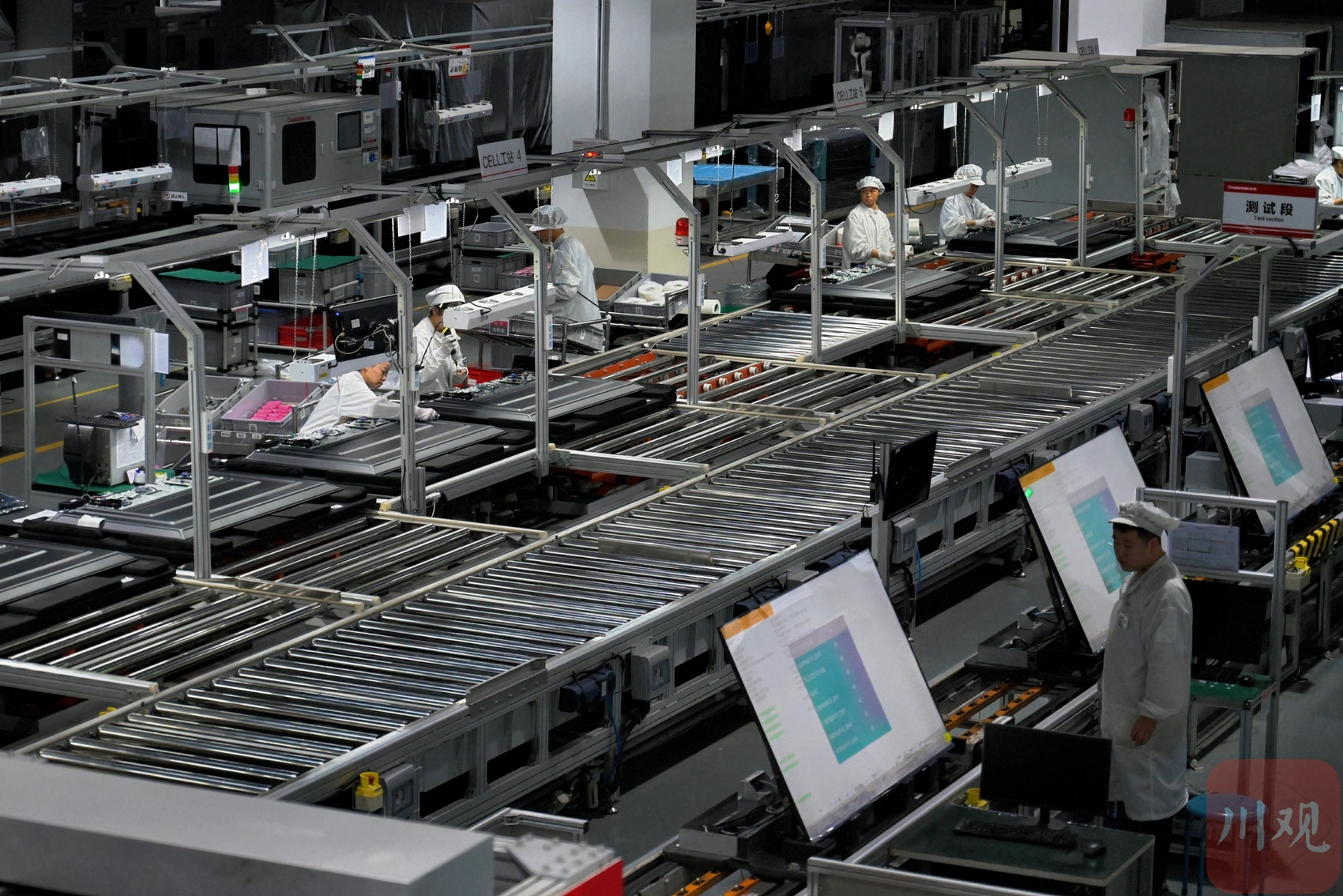 长虹智能制造产业园里,技术人员正生产测试长虹电视机产品。 李志强 摄