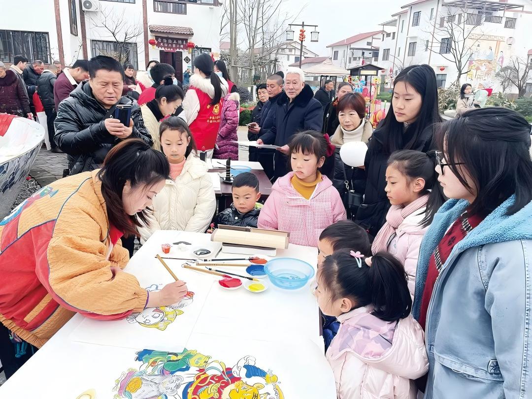春节期间,章昉在绵竹年俗村向当地群众和游客展示绘制年画。