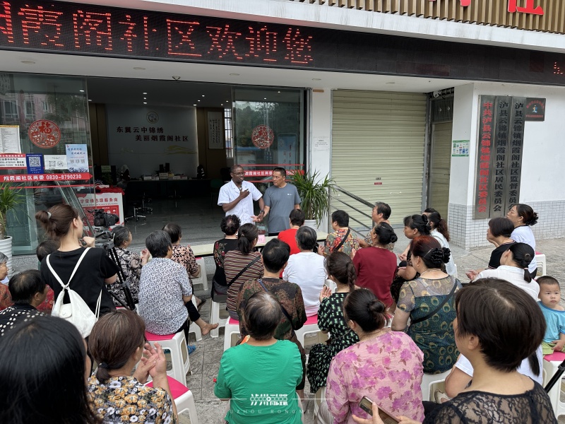 在云锦镇烟霞阁社区党群服务中心,20多位居民端着塑料独凳,早早候在中心前的坝子里。人群前方摆了一张条桌,上面放了个座牌,写着“迪亚拉”三个字。“等哈要问下咋个降血压。”“我想找他开副药。”“中医能控制血糖升高不?”等候的时间里,居民们七嘴八舌地交流着。泸县中医医院到这里只需步行5分钟。9时40分,有人看见迪亚拉远远走来,喊道:“来了来了,大家都坐好。”
