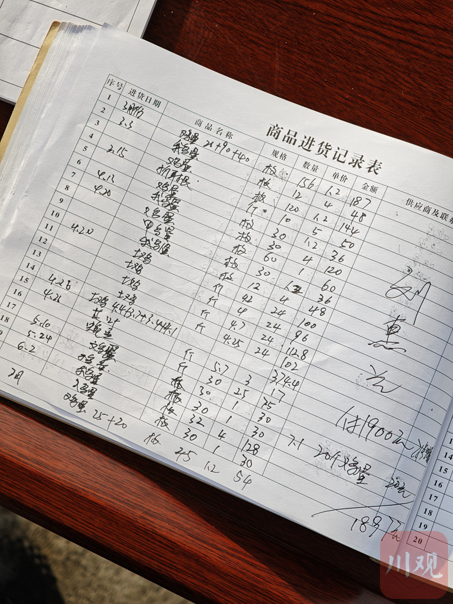 苍溪县河地镇兴华村党支部书记谢艾军的手写账本,详细记录着每一位村民在直播间的卖货记录。川观新闻记者 陈旻翔 摄