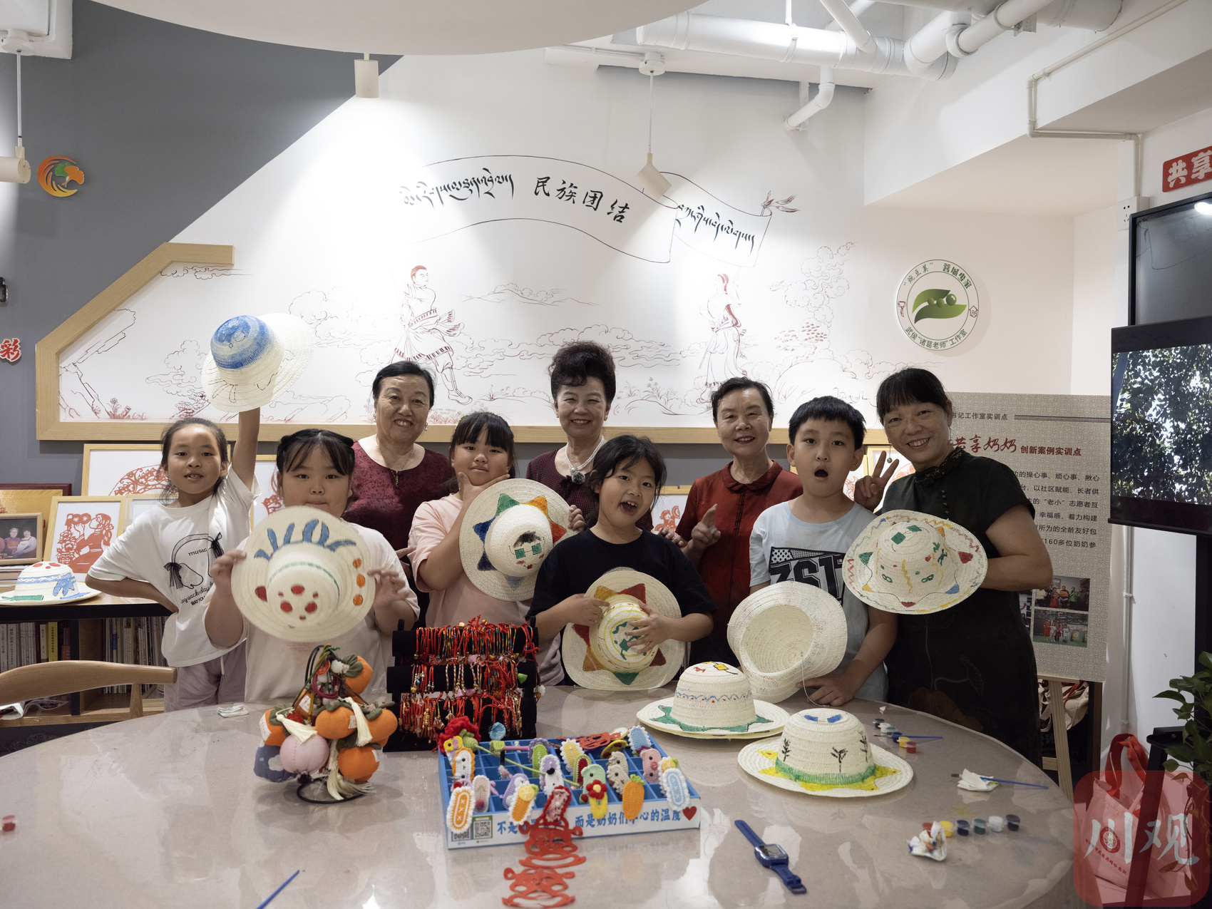 共享奶奶和孩子们正展示着他们绘制的草帽画。何涛 摄