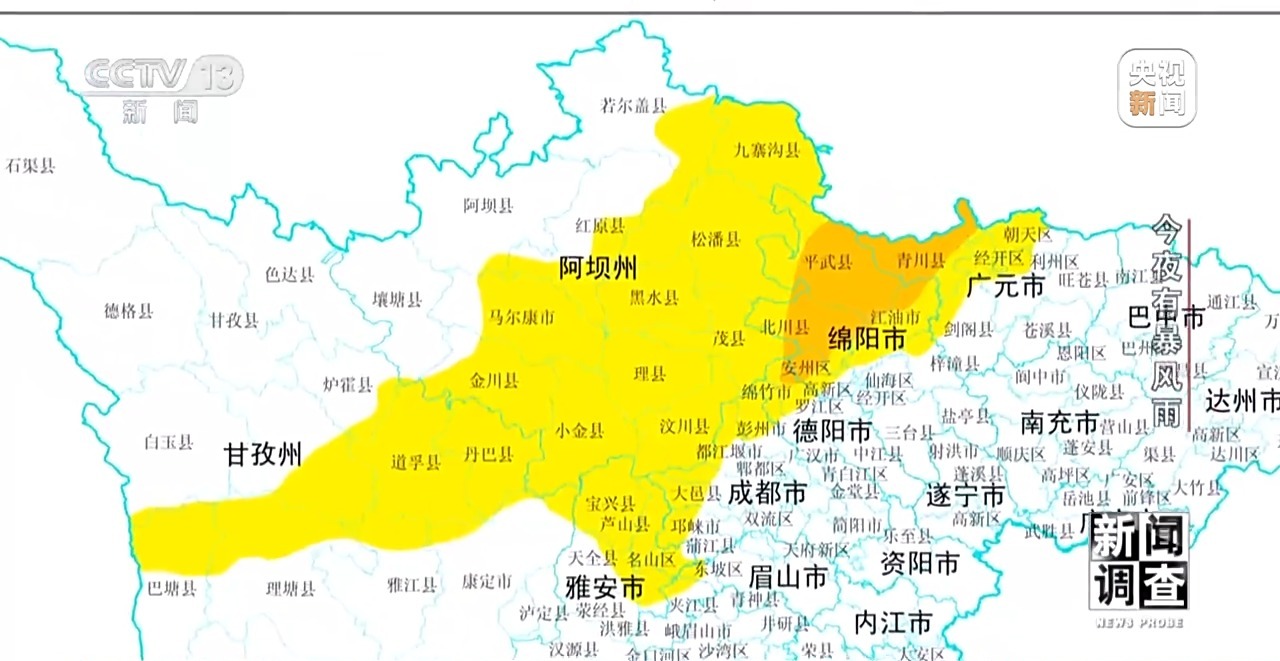 以县城为界,平武县分为上山区和下山区,气象局预测的当晚暴雨集中的6个乡镇,恰好是在海拔较高、山洪地灾风险较大的上山区,虽然相比于前一天,暴雨预警级别降低但这一晚谁也不敢掉以轻心。此外,一股冷空气的出现,更增加了暴雨雨量和降雨持续时间的不确定性。