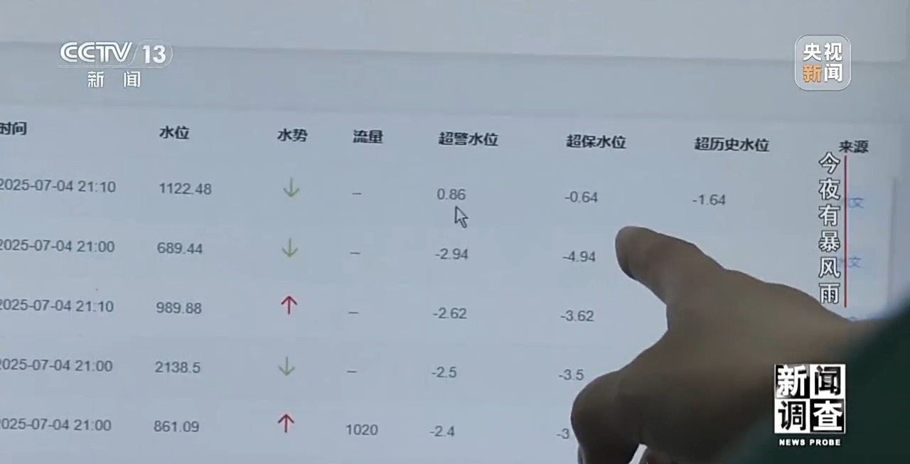 7月4日晚上9时10分,裹挟着泥石流的洪水从松潘县抵达平武县的水晶镇,并超警戒水位0.86米,离超保水位只有0.64米,因降雨加剧趋势,数据还在不断上涨。