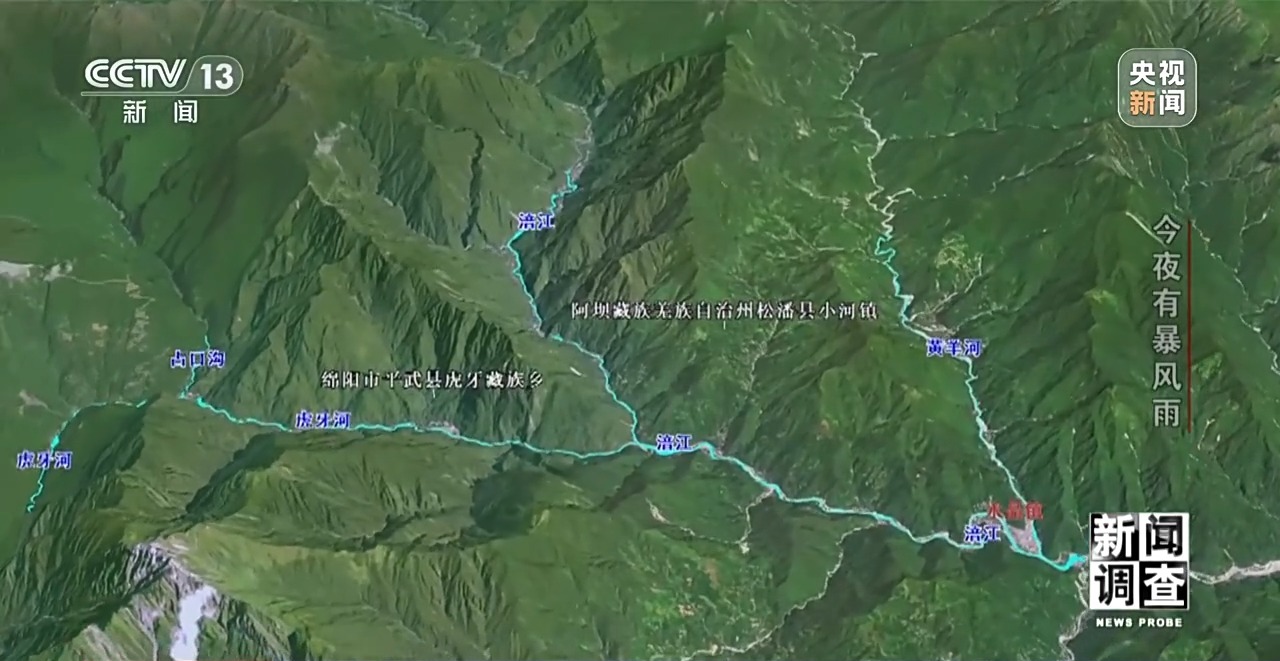 晚上6时左右,与平武县毗邻的阿坝州松潘县小河镇因短时降雨量过大,引发山洪泥石流,这让下游的平武县有些措手不及。
