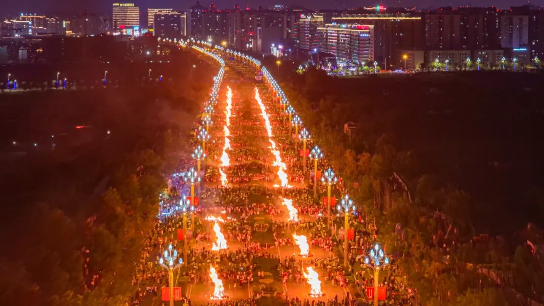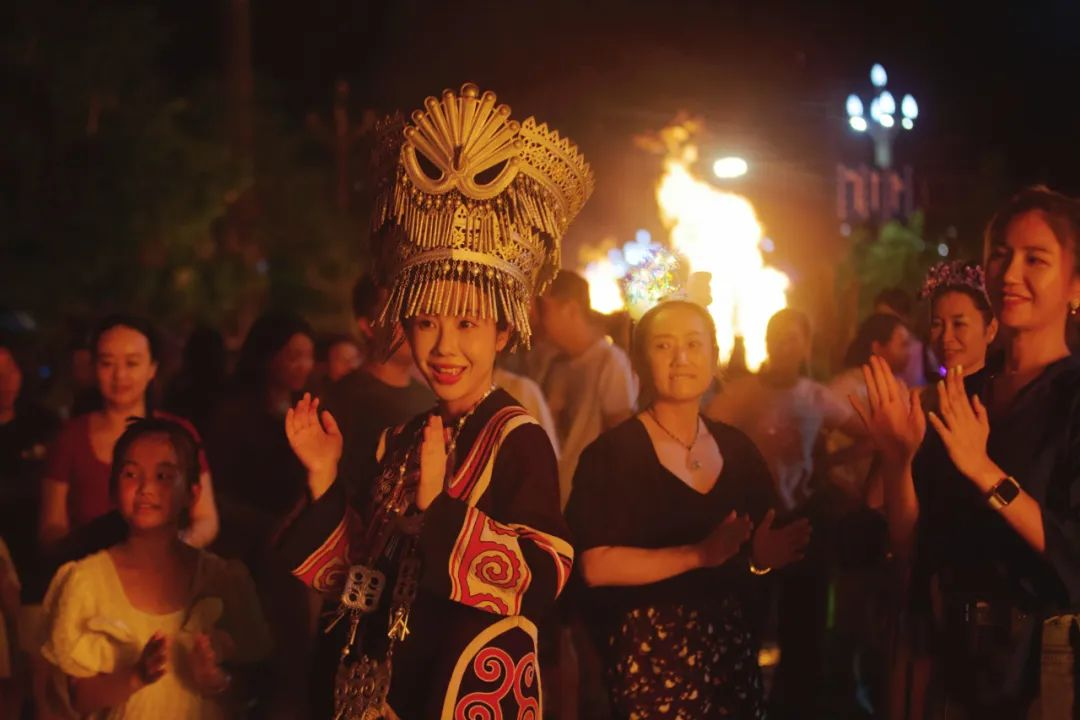 7月18日晚,夜幕降临,随着第一簇火焰在毕摩的手中腾空而起,万千火把同时亮起,全场瞬间沸腾。4.8公里的长街上,88个火堆熊熊燃烧,万千舞动的火把将整条航天大道东延线映照得如同一条奔腾跃动的“火龙”,市民游客在狂欢的队伍中,拉起手、围成圈载歌载舞,欢歌笑语响彻云霄。