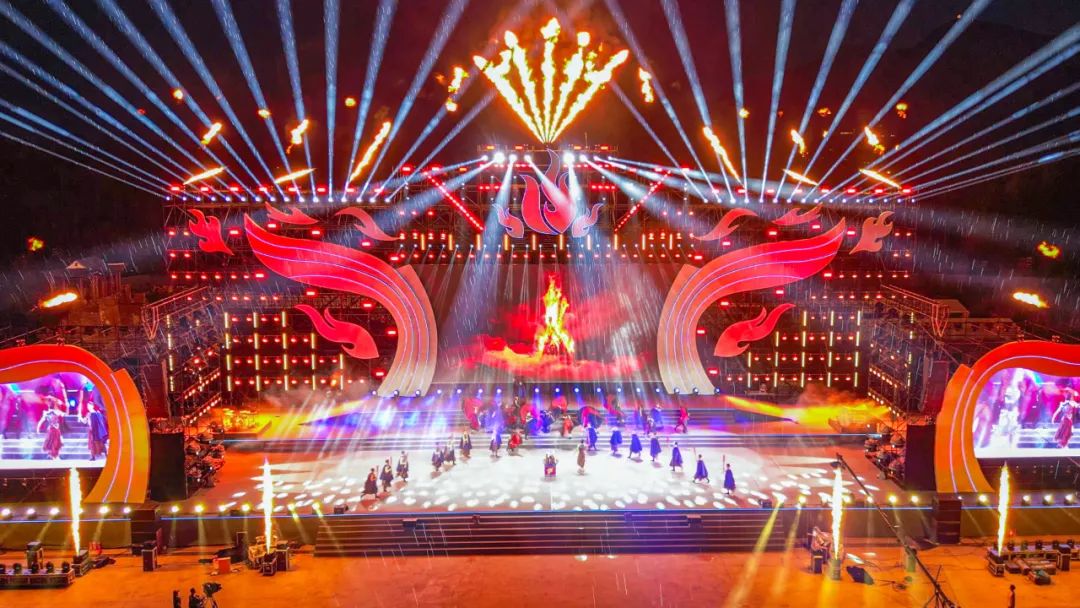 火把广场实景演绎:“阿惹妞”彝文化风情实景剧每天呈现经典歌舞与民俗展演,“凉山彝绣风尚盛典”T台秀惊艳亮相。