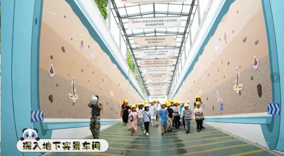 生物城再生水厂地面上的公园景观与周边环境有机结合,让环保设施从避之不及变成了“打卡胜地”。一年时间,就有2万余名学生走进生物城再生水厂进行研学体验,穿越地下实景工厂,操作模拟净水实验,制作超级水火箭,观看奇妙科学秀……“体验式游览+沉浸式互动”的模式,让环保知识不再停留于课本,而是化作生动的探索旅程,实现了环境、社会的和谐统一。