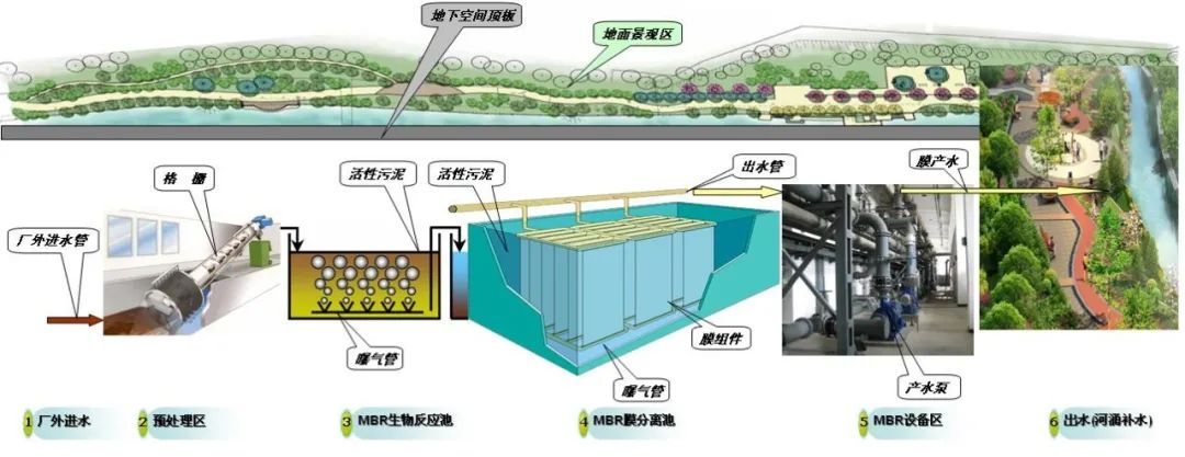 污水的重生经历了一套精密复杂的“净化流水线”:进厂污水、进水调流井,粗、细格栅、曝气沉砂池、膜格栅,水解酸化池,生化池,MBR膜池,臭氧催化氧化池,人工湿地,紫外线消毒,达标排放。