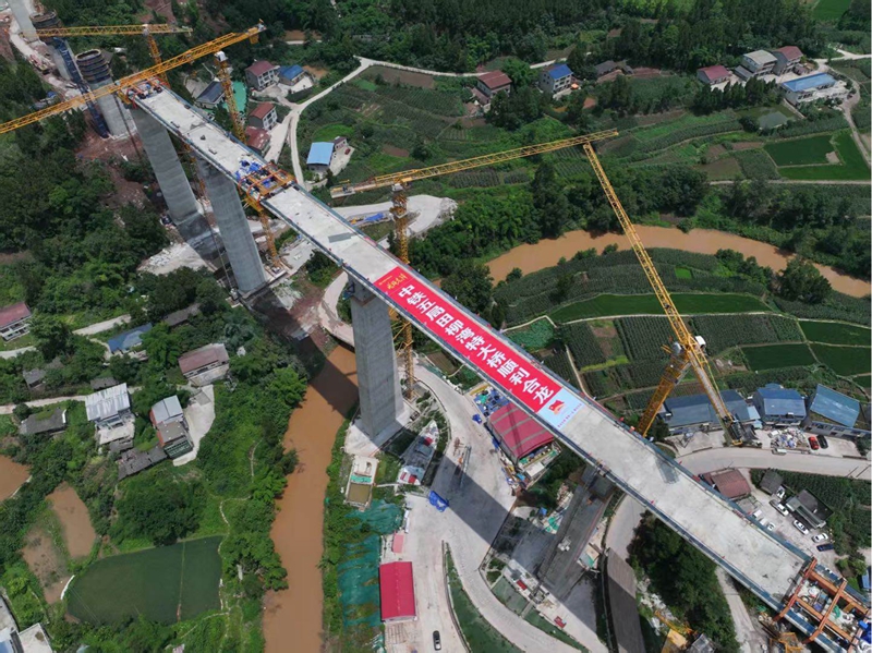 成渝中线高铁田柳湾特大桥顺利合龙(中国铁路成都局集团有限公司供图)