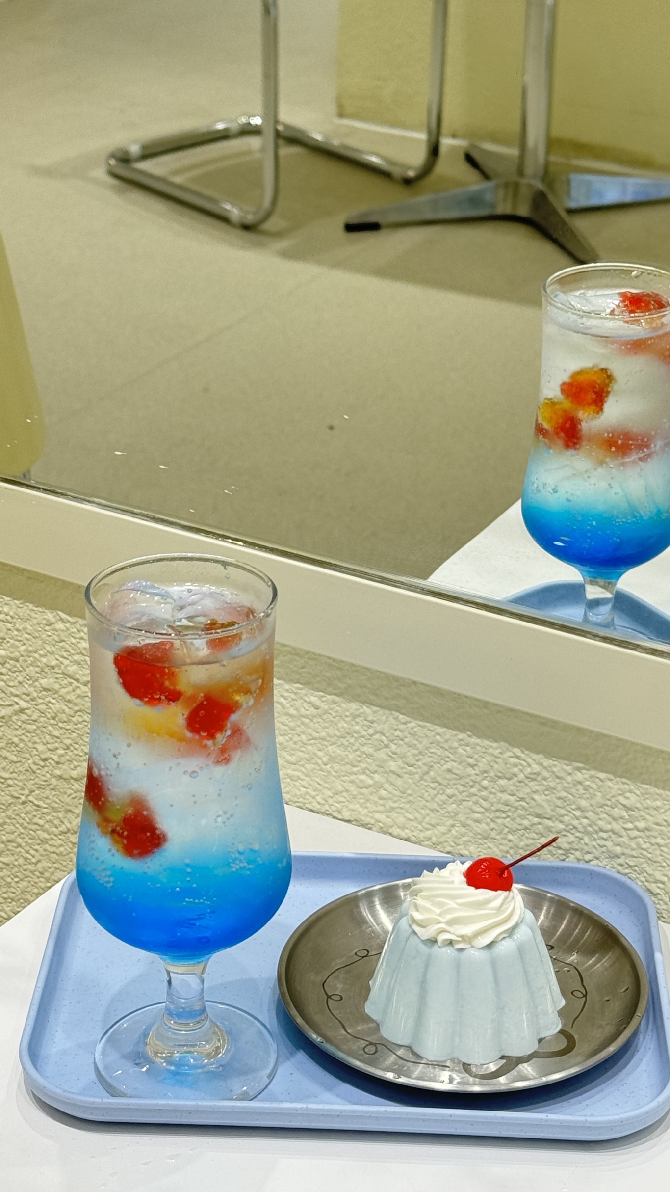 店内主营产品有布丁、蛋糕、气泡水、咖啡等,夸张大胆的配色充满着天马行空的想象力,布丁船、芒果拿铁,这些单品让人眼前一亮,味道如何小金在线等你们的反馈~