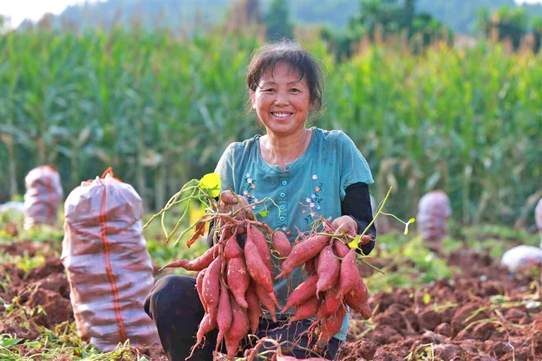 安居区中兴镇水竹林村,村民在采挖红薯。 张勤宝 摄