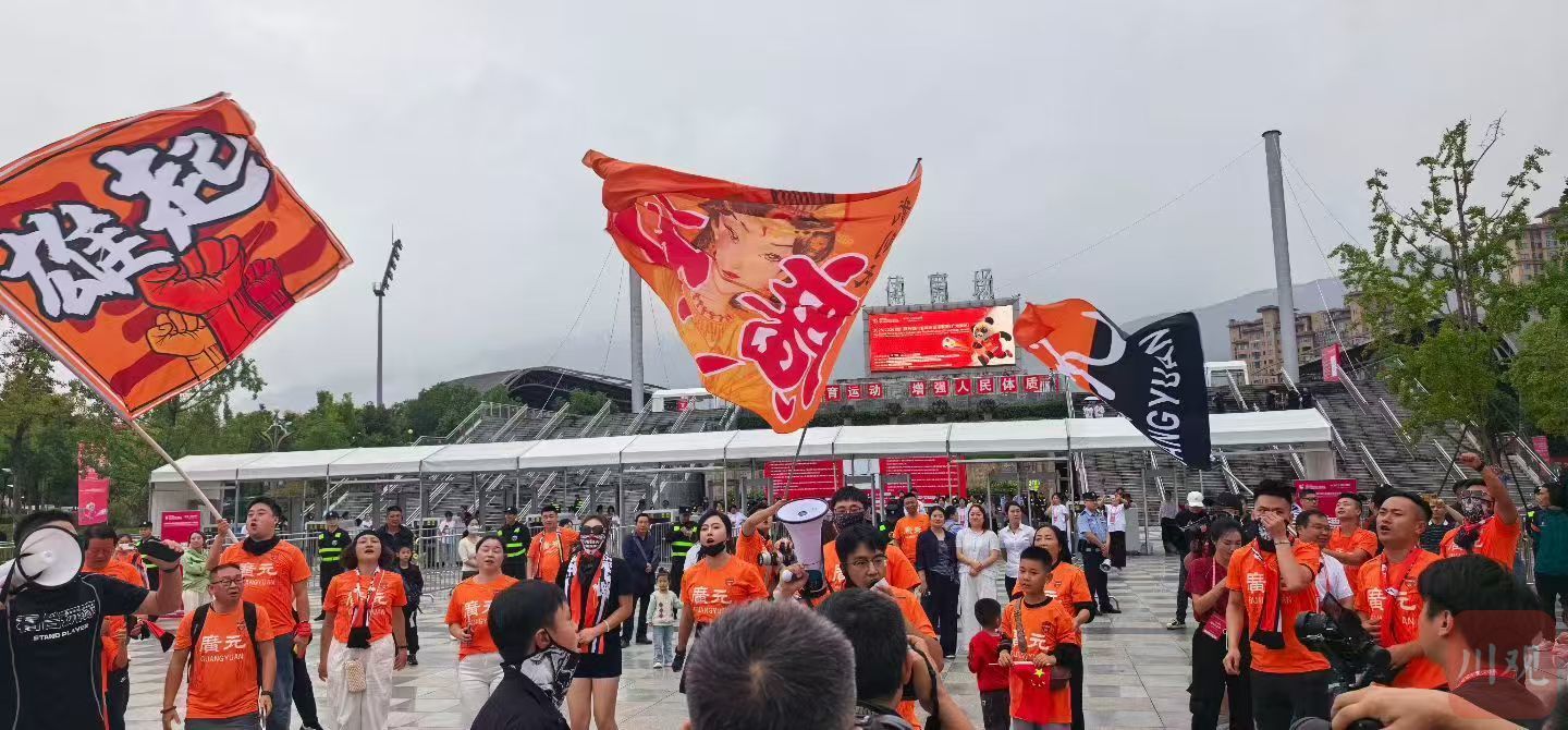 广元澳源体育中心外,聚集的球迷热情似火。陈平 摄
