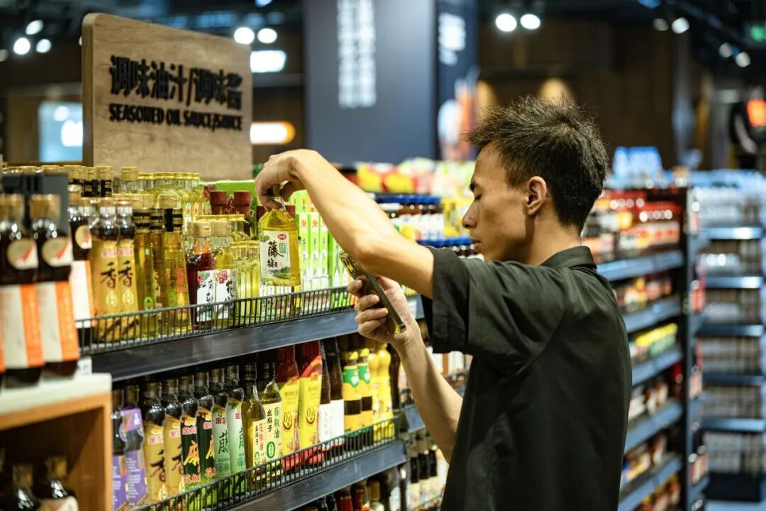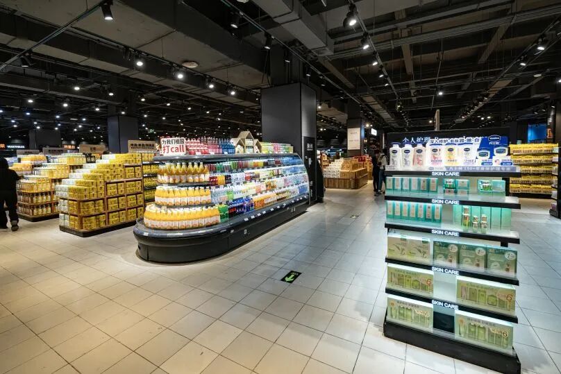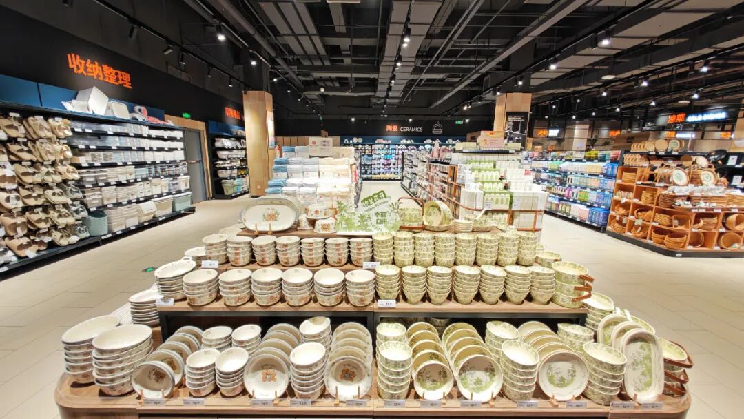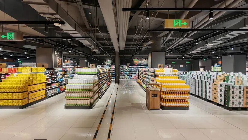 据永辉超市国色天乡店店长贾鹏介绍,新店取消了强制动线,大幅拓宽过道,并将中岛货架高度统一降至1.6米,营造出开阔通透的购物视野。