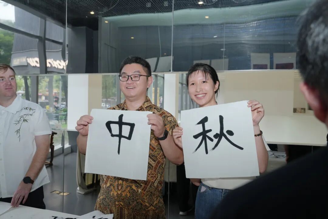 “一撇、一横……”在书法家的耐心指导下,四川农业大学外籍教授UMER KARAMAT认真握起毛笔,在宣纸上写下“中秋”二字。刚来温江工作一个月的他,是第一次体验毛笔书法。“虽然有点困难,但看到自己写出的汉字,感到非常开心,对中国书法文化有了新的认识。”他笑着说,虽然来温江不久,这里生态优美、开放包容的城市环境给他留下了深刻的印象,“我将慢慢感受温江的幸福美好。”